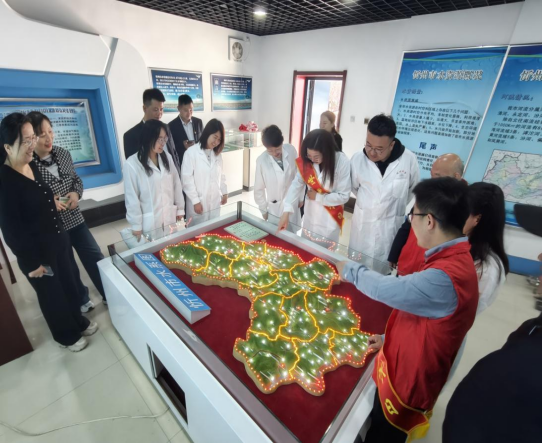 (圖為:與會(huì)人員在忻州市節(jié)水教育基地沙盤前聽取忻州水資源現(xiàn)狀講解)