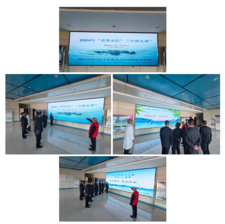 機(jī)關(guān)黨支部黨員志愿者帶領(lǐng)下,與會(huì)代表在忻州市節(jié)水教育基地展板前認(rèn)真學(xué)習(xí)了習(xí)近平總書記關(guān)于保護(hù)水資源的系列講話精神。在忻州市節(jié)水教育基地忻州市水資源電子沙盤前了解忻州市水資源現(xiàn)狀,聽取了志愿者講解“節(jié)水優(yōu)先、空間均衡、系統(tǒng)治理、兩手發(fā)力”的治水思路和全省“三縱九橫、八河連通”水網(wǎng)體系建設(shè)成果。在水質(zhì)檢測(cè)大樓門廳大顯示屏前聽取了志愿者講解2024年“世界水日?中國(guó)水周”宣傳標(biāo)語深刻內(nèi)涵和節(jié)水常識(shí)。